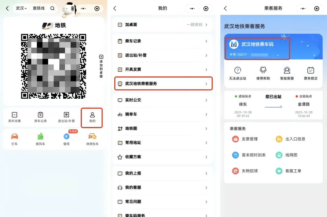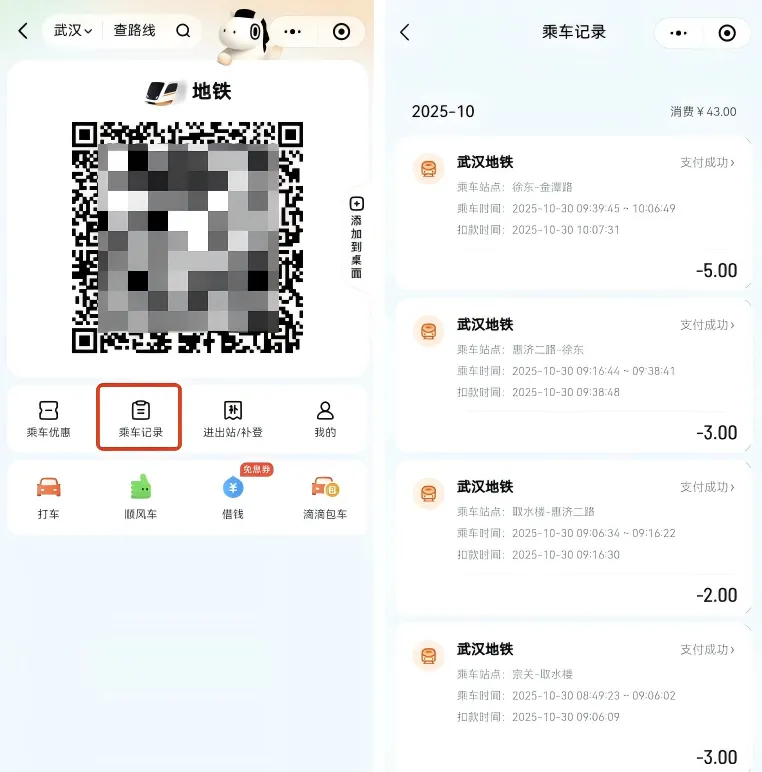 11月1日起,打开滴滴出行App或滴滴出行微信小程序,即可刷码乘坐武汉地铁啦!