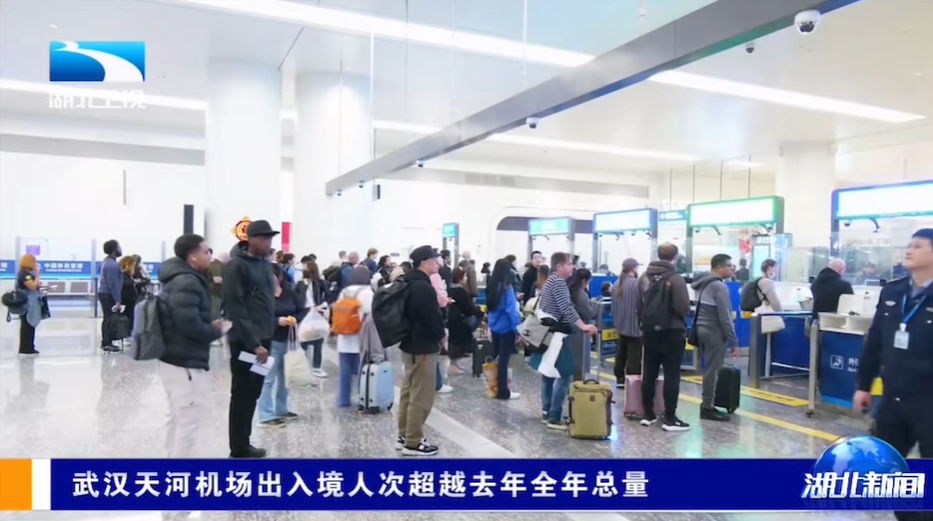 11月3日,武汉天河机场口岸2025年出入境人员总量突破128.9万人次,超越去年全年总量。