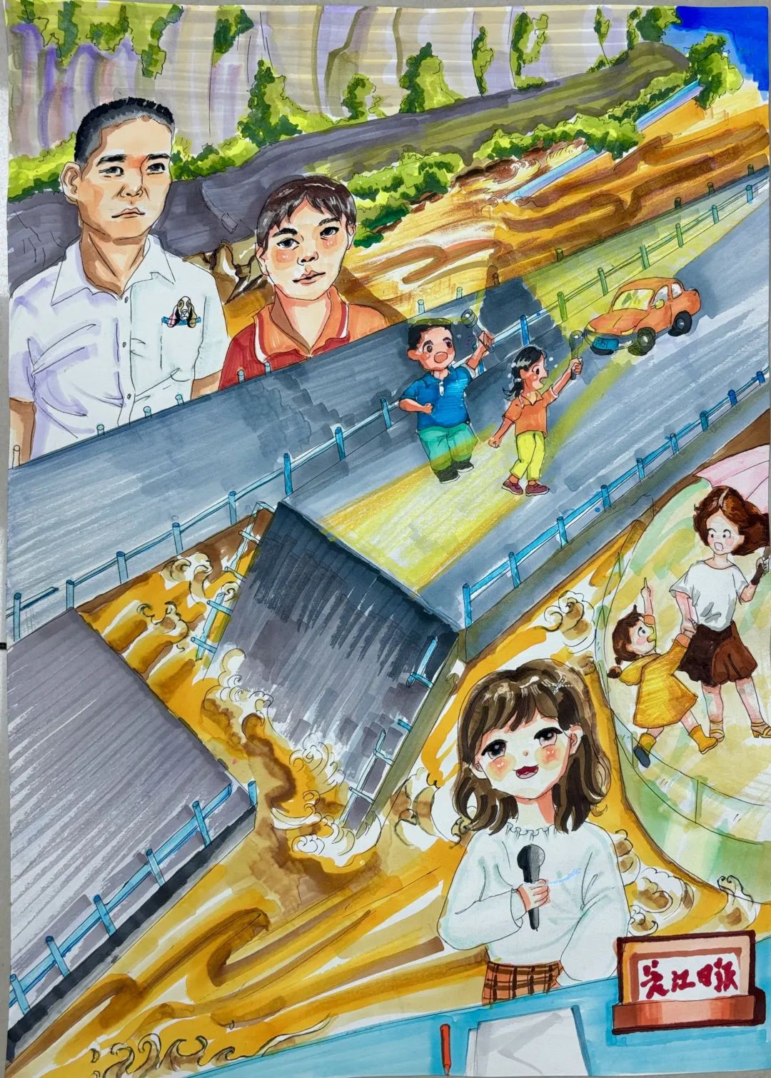 “小朋友将现场的各种要素都画进去了,作品通俗易懂,非常有传播力。” 邓国锐在列车看到自己在大雨中救人的故事被创作成画作,无比感动。他认为,成年人看到这些画作,也一定能感受到其中的信息。“这对于我的工作是很大的鞭策,只要是群众需要帮助的,我都会伸出援助之手!”