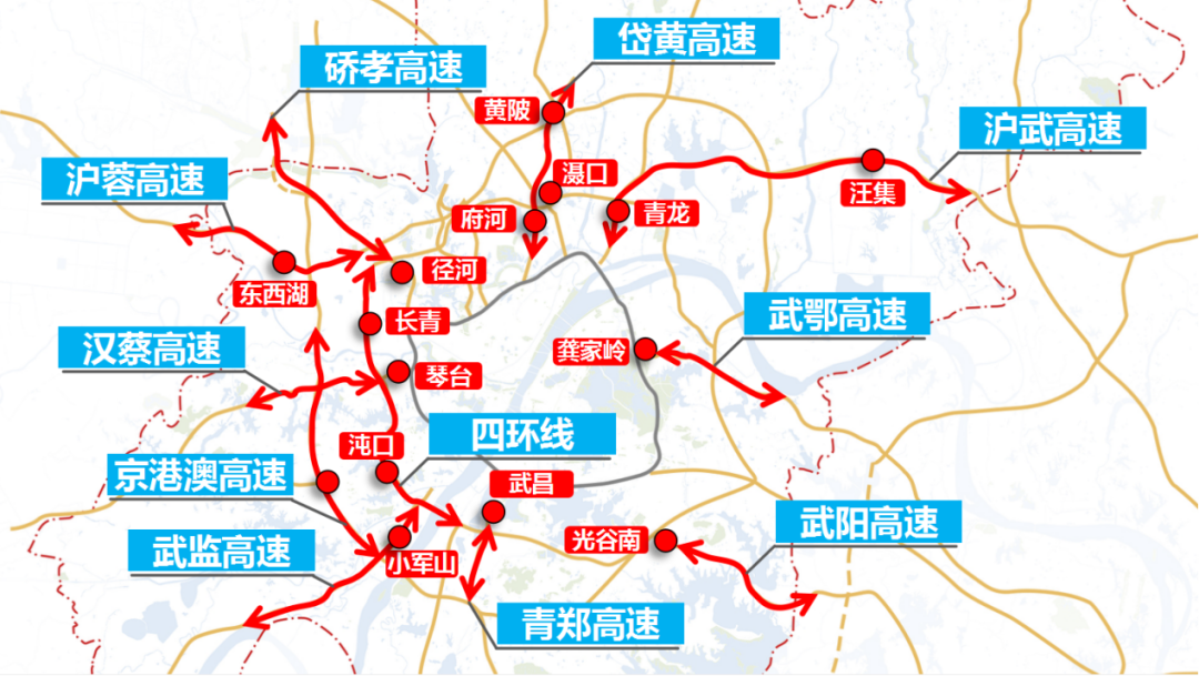 高速出行方向预计以黄陂区、蔡甸区、东湖高新区方向为主,府河、琴台、龚家岭、黄陂、蔡甸将位居高速公路收费站日均流量排名前五。