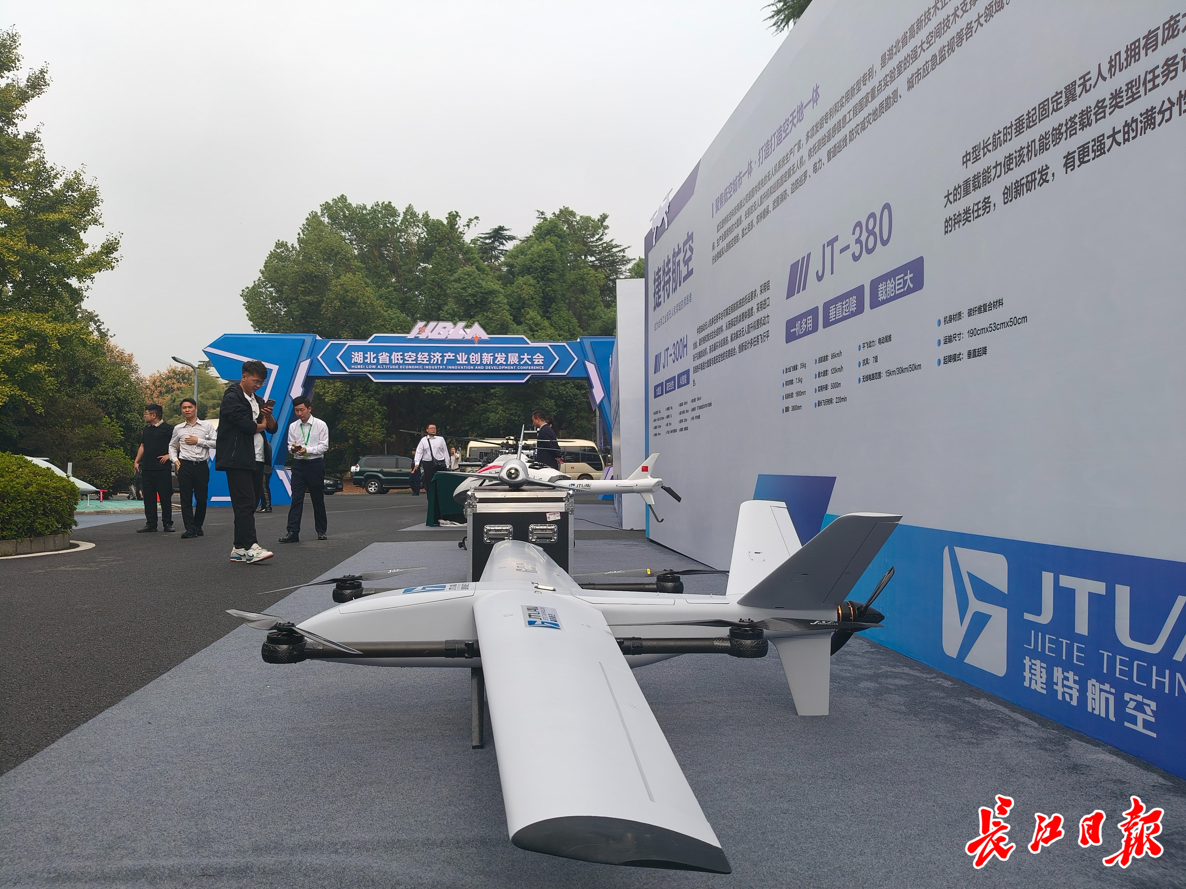 武汉捷特航空展示自研的垂起固定翼无人机。