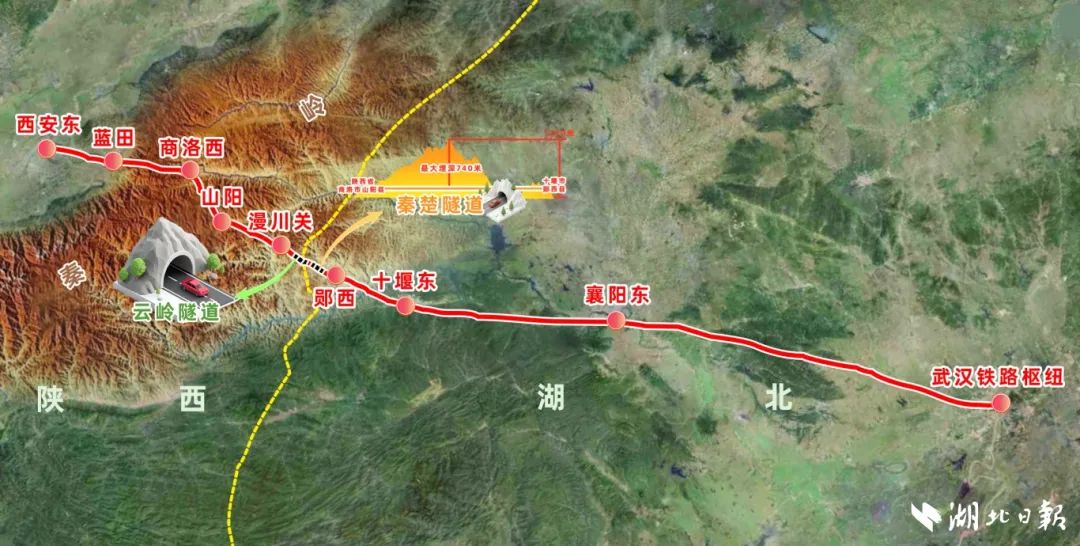 如今,穿越历史的烟云,以“八纵八横”为主的高铁网正将大中小城市紧紧地联系在一起。秦楚隧道的贯通,意味着湖北高铁西北通道顺利“出关”,对于湖北打造超“米”字型高铁网具有重要意义。