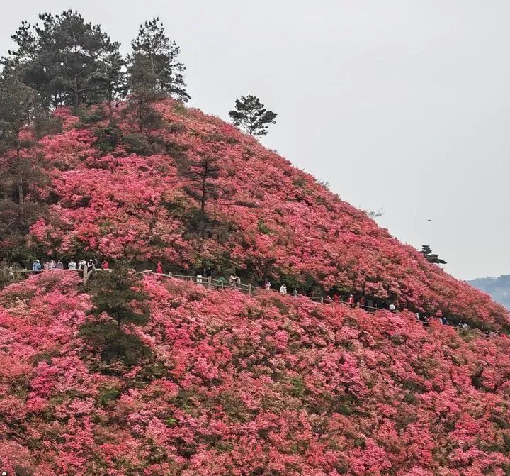 游客在木兰云雾山观赏杜鹃花。梁建强 摄