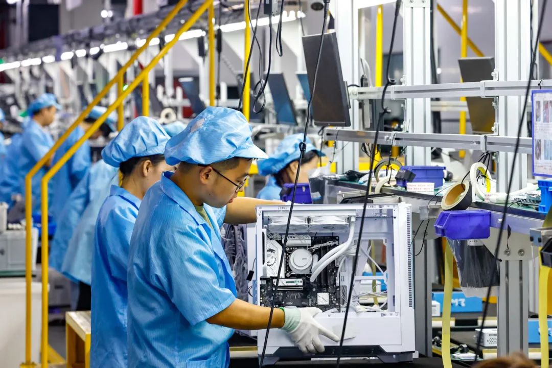 “星闪是新一代近距离无线连接技术,传输速度和抗干扰性远超蓝牙和Wi-Fi。”攀升科技主要负责人介绍,攀升科技实现柔性化生产,让生产线上每台电脑都不一样,顾客在网上下单,基本实现24小时内发货,完全满足用户大规模个性化定制。