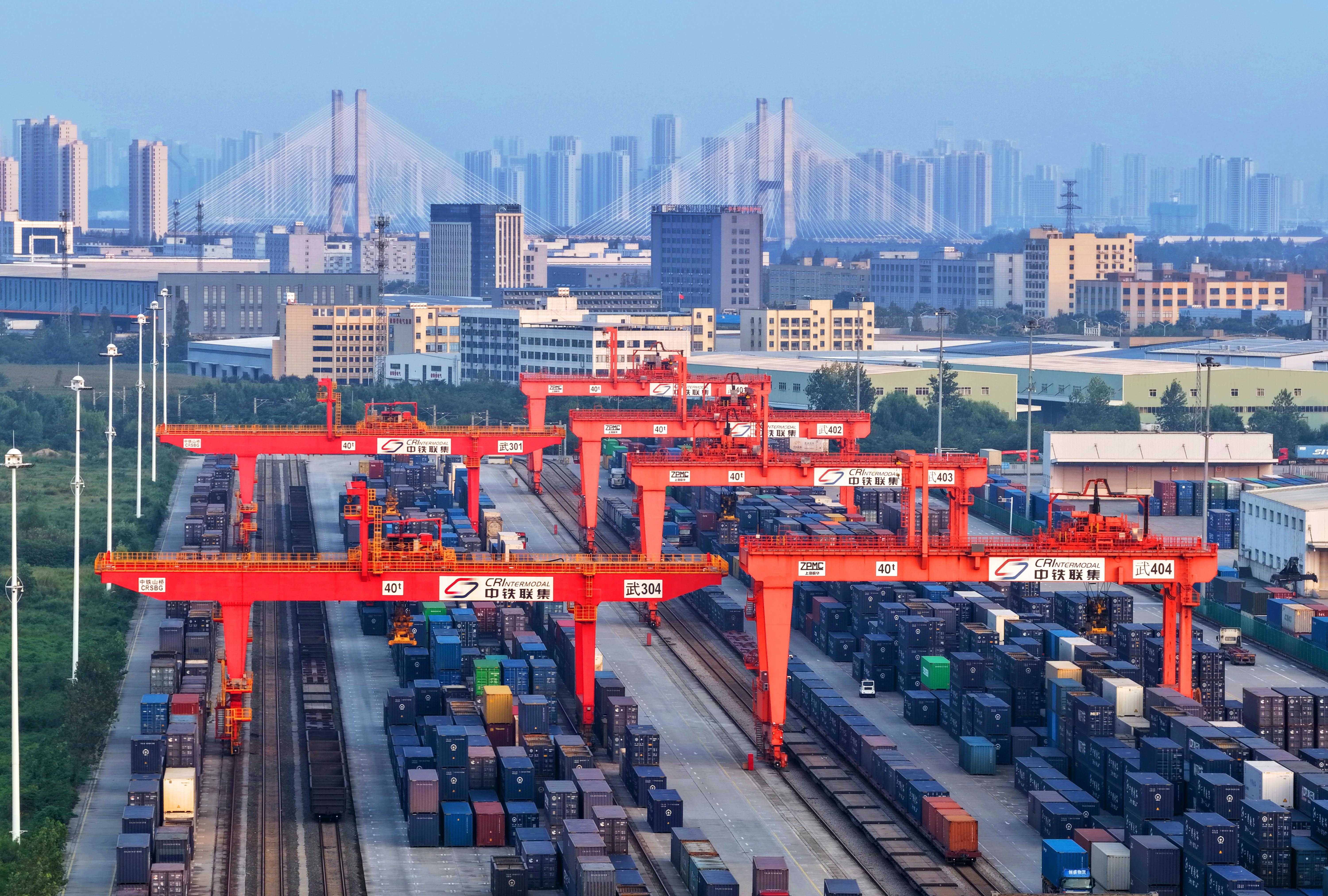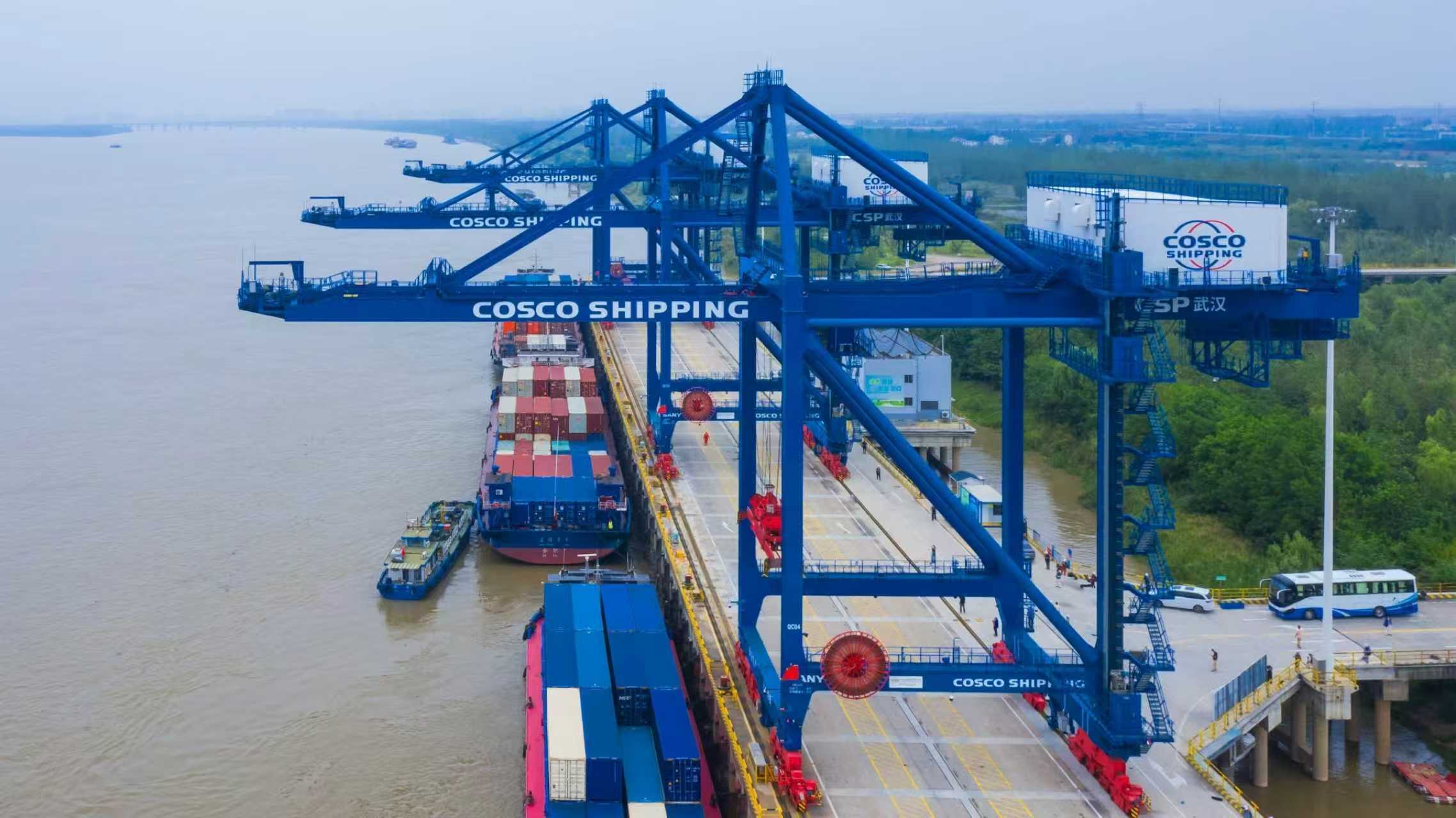 摄影师们长枪短炮齐上,无人拍摄机一架架起飞,用镜头记录着长江中游航运中心的崛起和“黄金水道” 与 “钢铁丝路” 双向赋能的内陆开放新高地澎湃脉动。