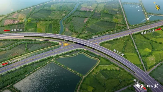 据项目技术负责人介绍,全线按照双向六车道标准建设,其中8.581公里已建成通车,剩余10.818公里新建段正全力推进。值得一提的是,道路在G107段采用菱形互通设计,主线高架桥上跨,确保交通畅通;跨仙女湖段则采用环保施工工艺,最大限度保护水域生态。项目建成后,从孝感主城区到武汉天河机场仅需30分钟,到阳逻港也将实现快速直达。