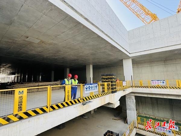 武汉地铁股份公司业主代表邱子锋介绍,余家头站位于武昌区和平大道与国盛路交会处,是一座地下四层车站,最深处达到35.5米,相当于12层楼的高度,是10号线最深的车站。车站设有4个出入口,建成后将与5号线实现通道换乘,进一步完善区域轨道交通网络。