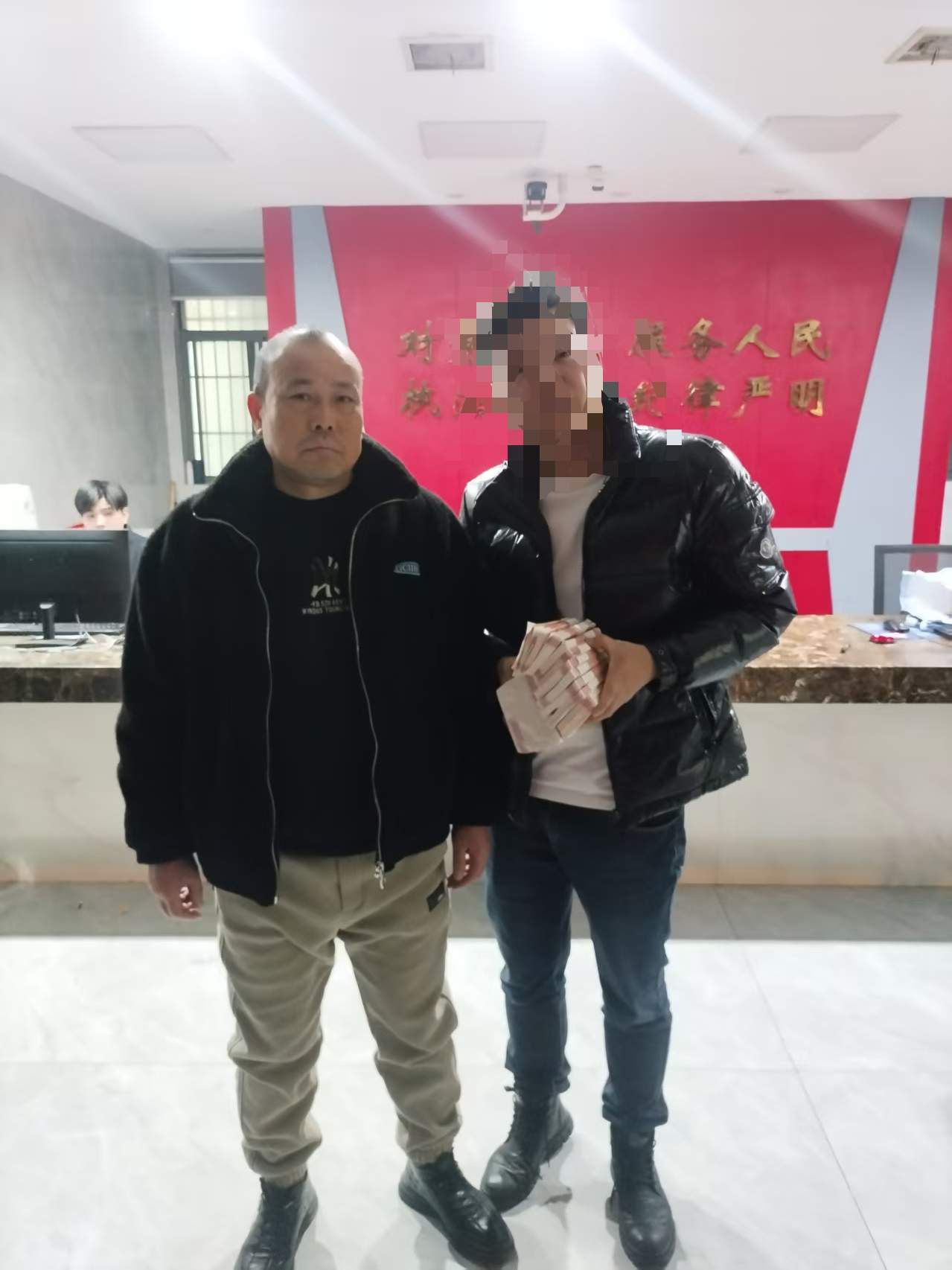 随后,王师傅驱车前往梨园派出所,向值班民警说明了情况,将装有二十万元现金的档案袋交由民警暂时保管,等待失主前来认领。半夜一点左右,一位中年男士气喘吁吁地冲进派出所,正是那位醉酒遗失现金的乘客。当他看到民警手中的档案袋时,眼眶瞬间红了。经民警核实身份后,档案袋被打开,失主当着众人的面仔细清点,二十万元现金分文未差。他激动地握住王喜生师傅的手,久久不愿松开,声音哽咽地连声道谢:“师傅,太感谢你了!你真是我的大恩人啊!这笔钱要是丢了,我真不知道该怎么回家了!”办完这件事已快凌晨三点。