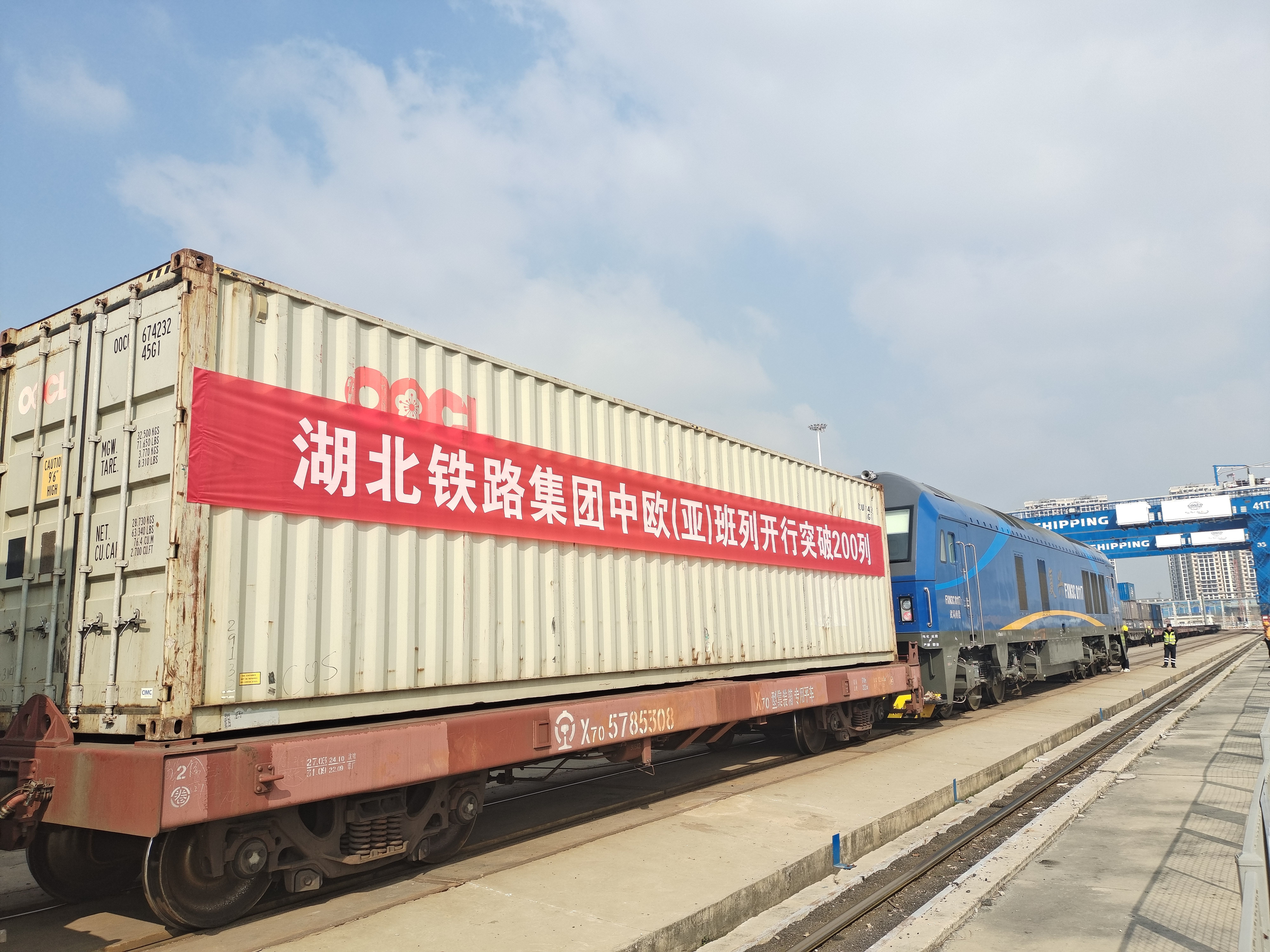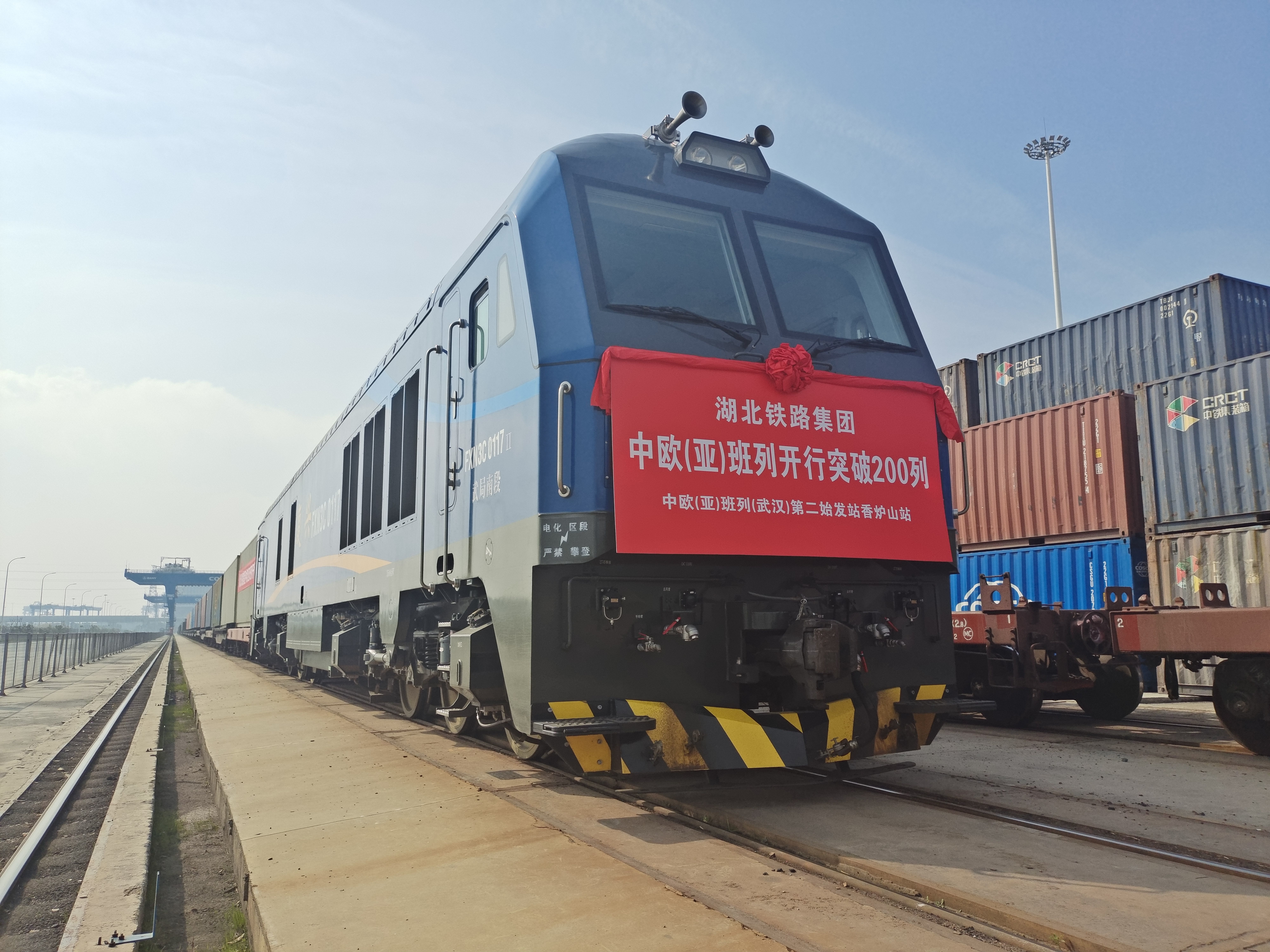 2月8日,一列满载55个集装箱汽车散件的中亚班列从武汉铁路局香炉山站驶出,经霍尔果斯口岸奔赴哈萨克斯坦。这是从香炉山站始发的第17列中欧(亚)班列,也标志着湖北铁路集团国际联运有限公司累计开行中欧(亚)班列突破200列大关。