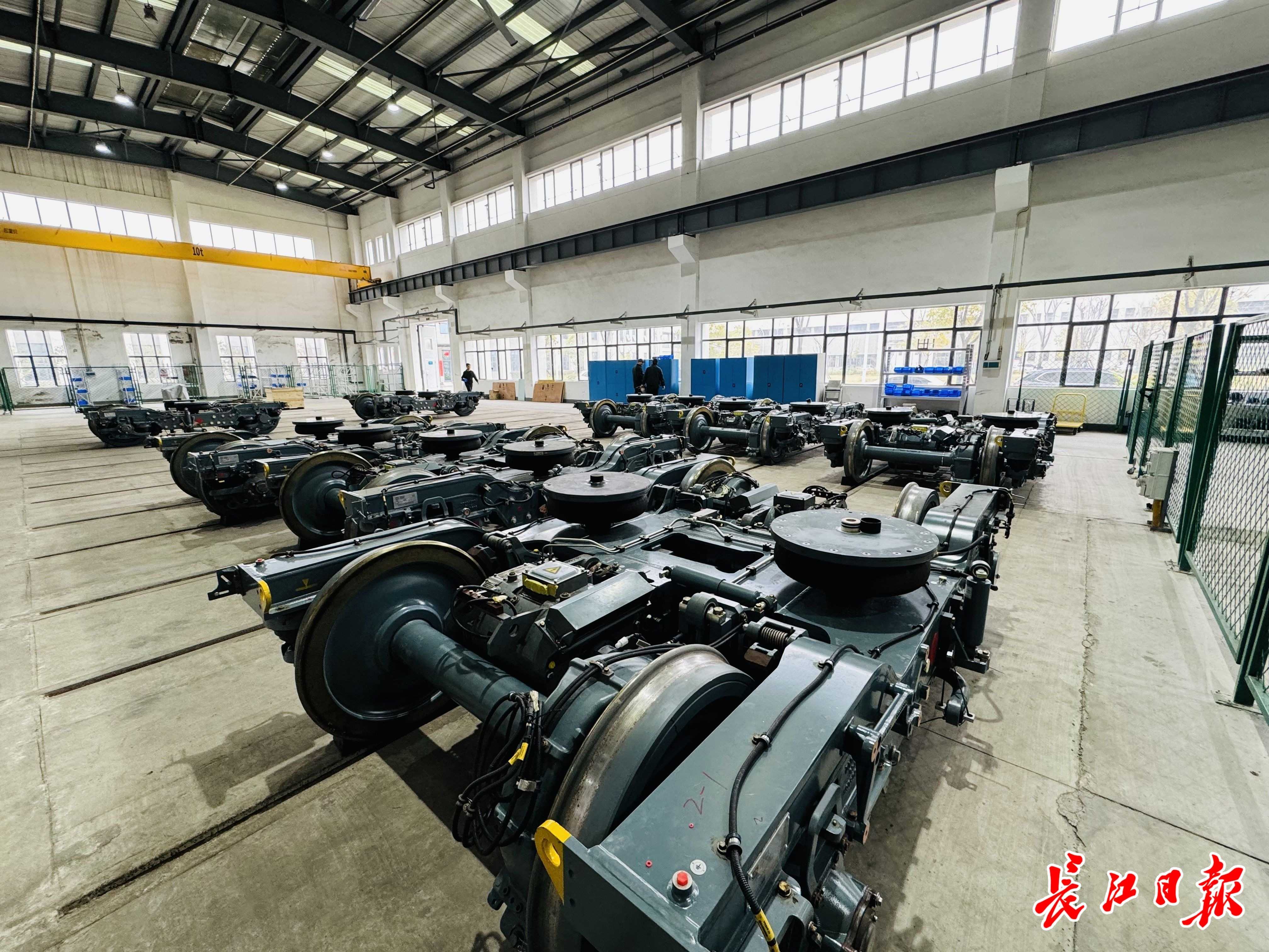 已完成检修的转向架等备件分类码放。
