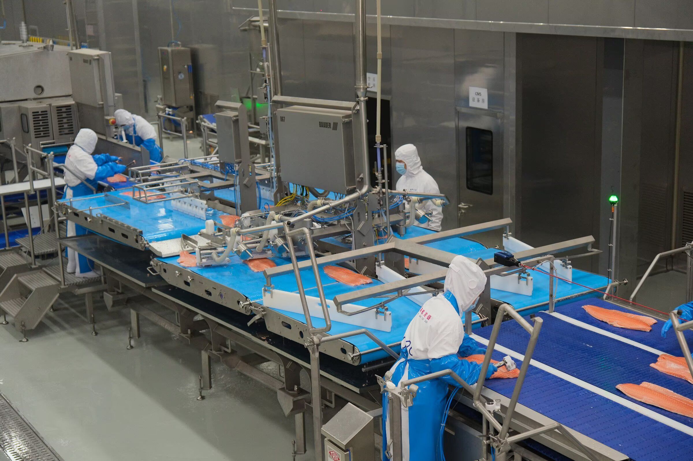 40个小时前,这些鱼还在挪威卑尔根与冰岛峡湾的冷冽海水中摆尾;如今,它们已搭乘“鄂州—奥斯陆”货运包机,落地、通关,躺上了这条亚洲最大的三文鱼智能生产线。