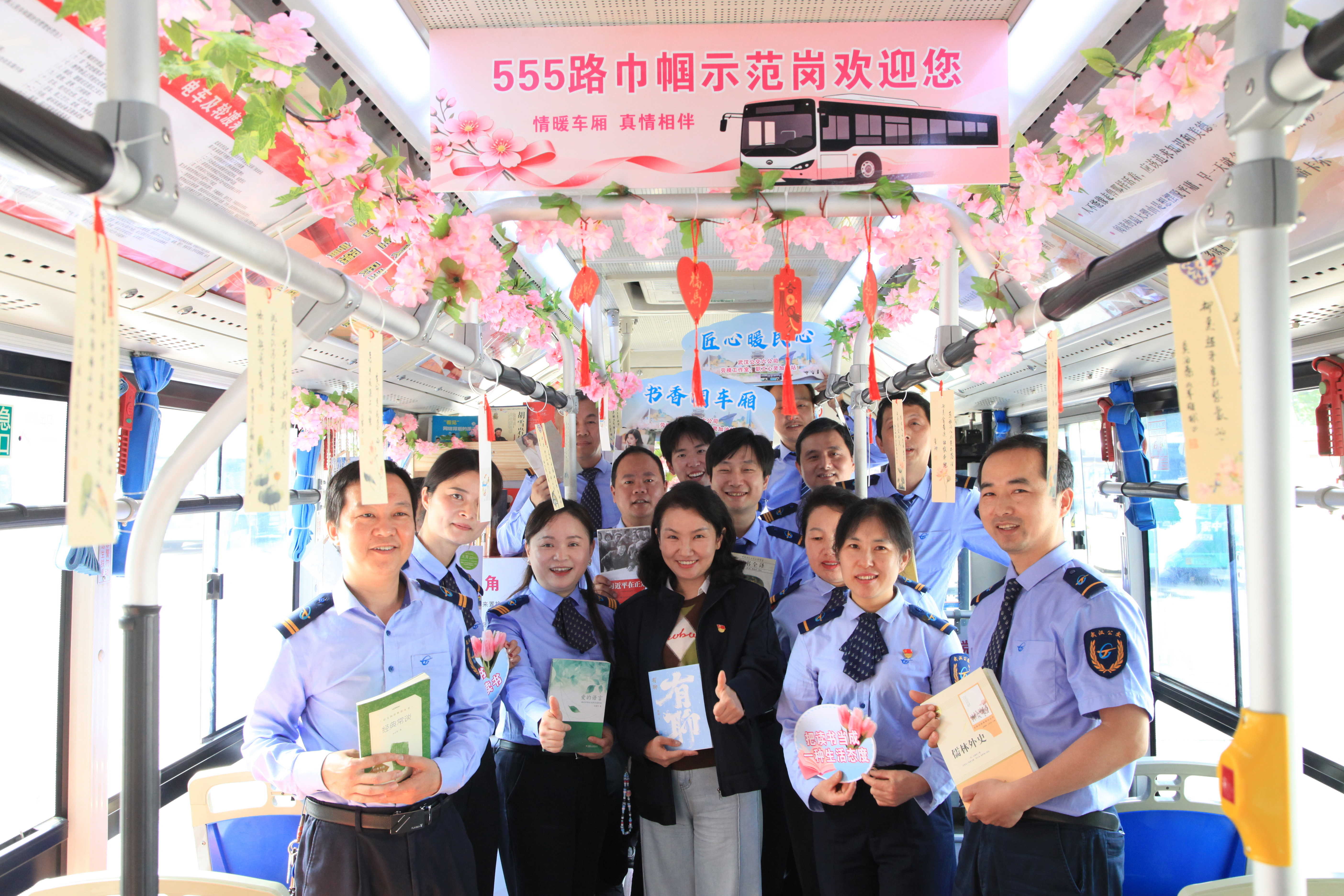 4月18日,世界读书日来临前夕,武汉公交六公司在建设十路公交场站,开展“情暖车厢·书香润车厢 匠心暖民心”主题活动,将555路2468号巾帼示范岗、工人先锋号公交车,打造为“书香巴士·流动微书房”,让阅读融入市民日常出行,为公交出行增添书香气息与人文暖意。