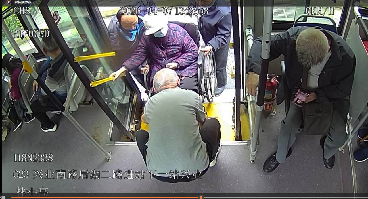 “那天的情况有些特殊,我驾驶的是一辆老款车型,后门处有一个小台阶。于是,我请车上一位年轻乘客帮忙,大家一起协力将老爷爷的老伴连人带轮椅抬上了车厢。”柳杰回忆道,为了确保行车途中轮椅的稳定性,他特意锁死刹车,并用安全带将轮椅固定妥当。这样的温馨场景,在过去两个月里已经成为623路驾驶员们的常规操作。