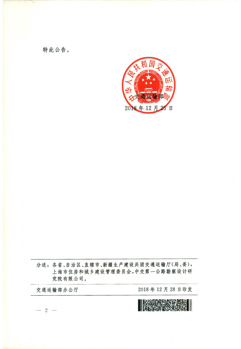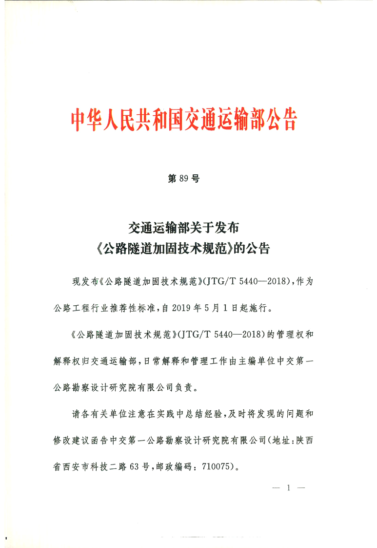 交通运输部关于发布《公路隧道加固技术规范》的公告