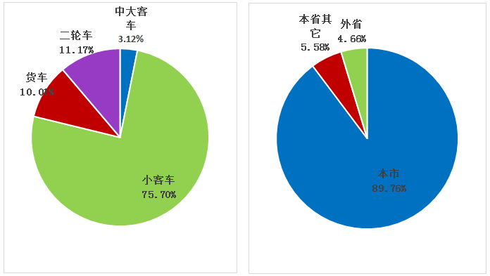 本周进出三环区域车辆中,小客车占比75.70%,货车占比10.01%,外籍车辆占比10.24%。